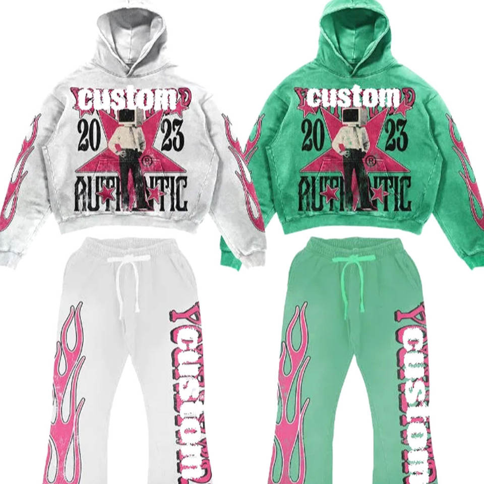 Vêtements de rue survêtement vêtements personnalisés impression acide lavage grande taille pull à capuche pantalons de survêtement évasés hommes par sport élégant