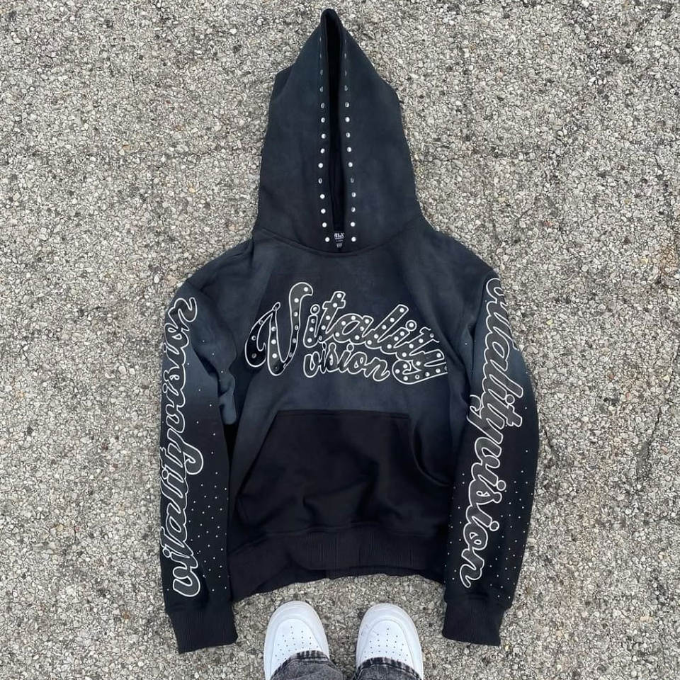 Sweat à capuche en molleton délavé, tendance streetwear, design tendance, bonne qualité, vintage, strass, impression numérique d'hiver, look élégant, essentiel