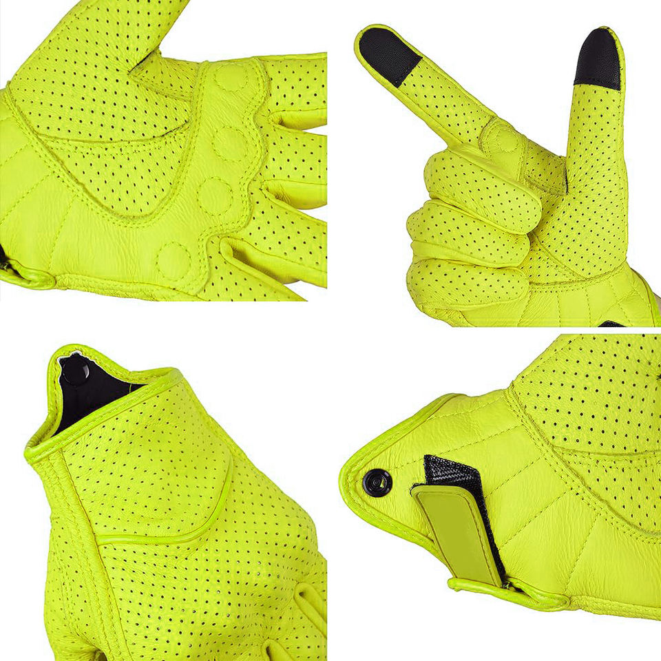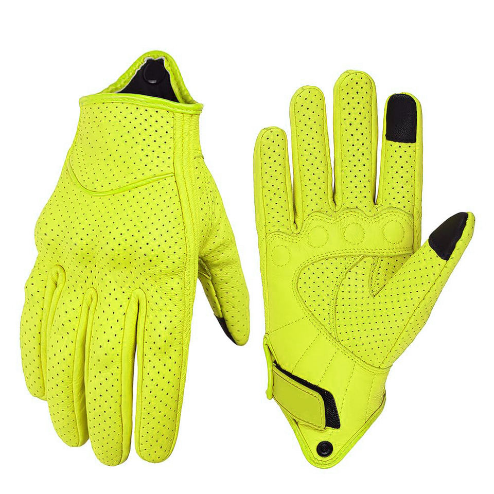 Gants de moto pour la route et la piste avec cuir cousu de haute qualité et protection antidérapante sur la paume
