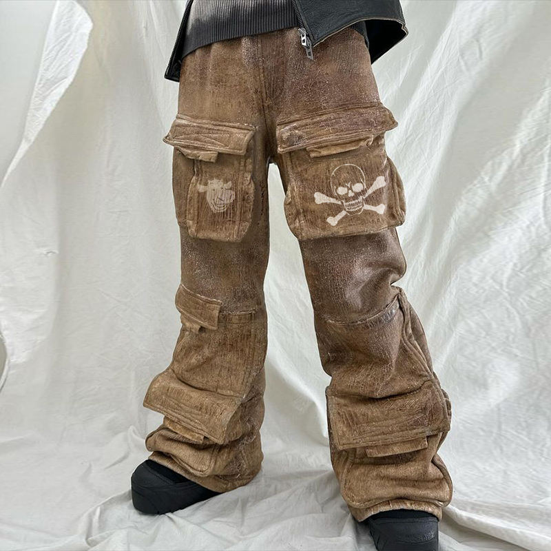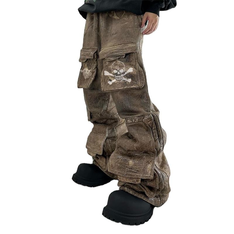 StreetLux Custom Waste Wind Jeans à jambe droite pour hommes Printemps Nouvelle tendance Pantalon cargo ample à grandes poches rétro paresseux