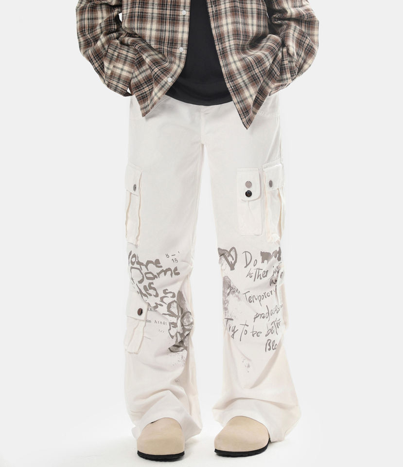 StreetLux Conception d'impression de pâte à eau personnalisée Sens de la salopette américaine Hommes 2024 Marque de mode Pantalon décontracté droit blanc