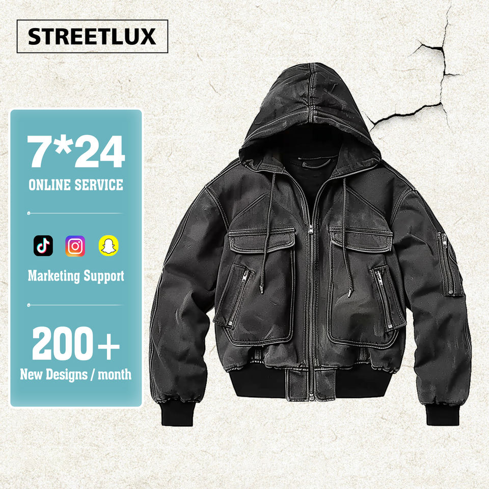 StreetLux-Veste de travail personnalisée en toile, poids lourd, avec capuche, pour la détresse, teintée à froid, vêtements de travail, blouson aviateur pour hommes