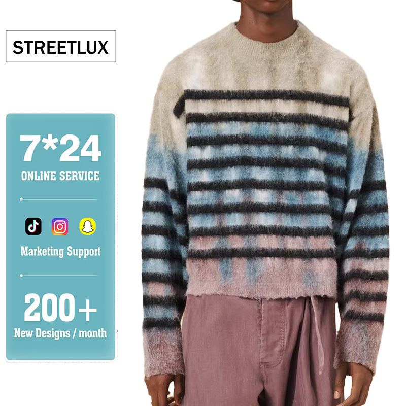 Streetlux 2024 Automne/Hiver Nouvelle Tendance Pull Rayé en Mohair pour Homme Pull en Mohair Chaud en Tricot Respirant et Peluche