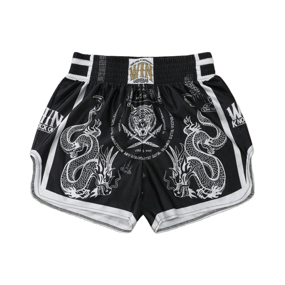 Streetrush Men's 100% Polyester Custom Boxing Shorts Set High Tolerance Muay Thai Shorts with Dragon Graphics One-Piece Design