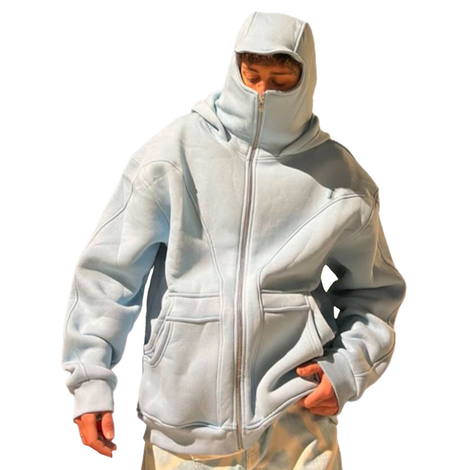 Streetwear Balaclava Hoodie Full Zip up Pullover Masked Hoodies Double Hooded Heavyweight Custom 500 Gsm Puff Print Hoodies