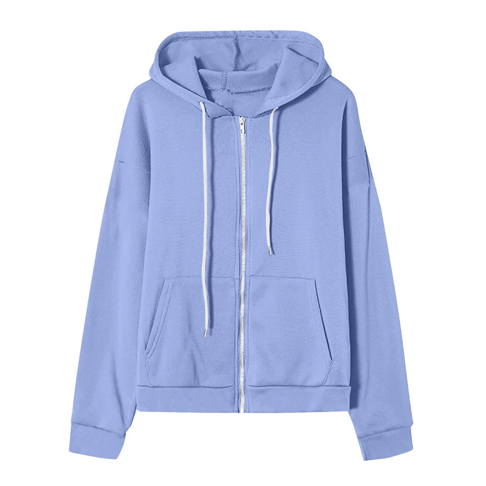 Streetwear Casual Sexy Long Sleeve Solid Plain Zipper Hoodies Women Off Drop Shoulder Zip up Hoodie Sweater Women's Hoodies
