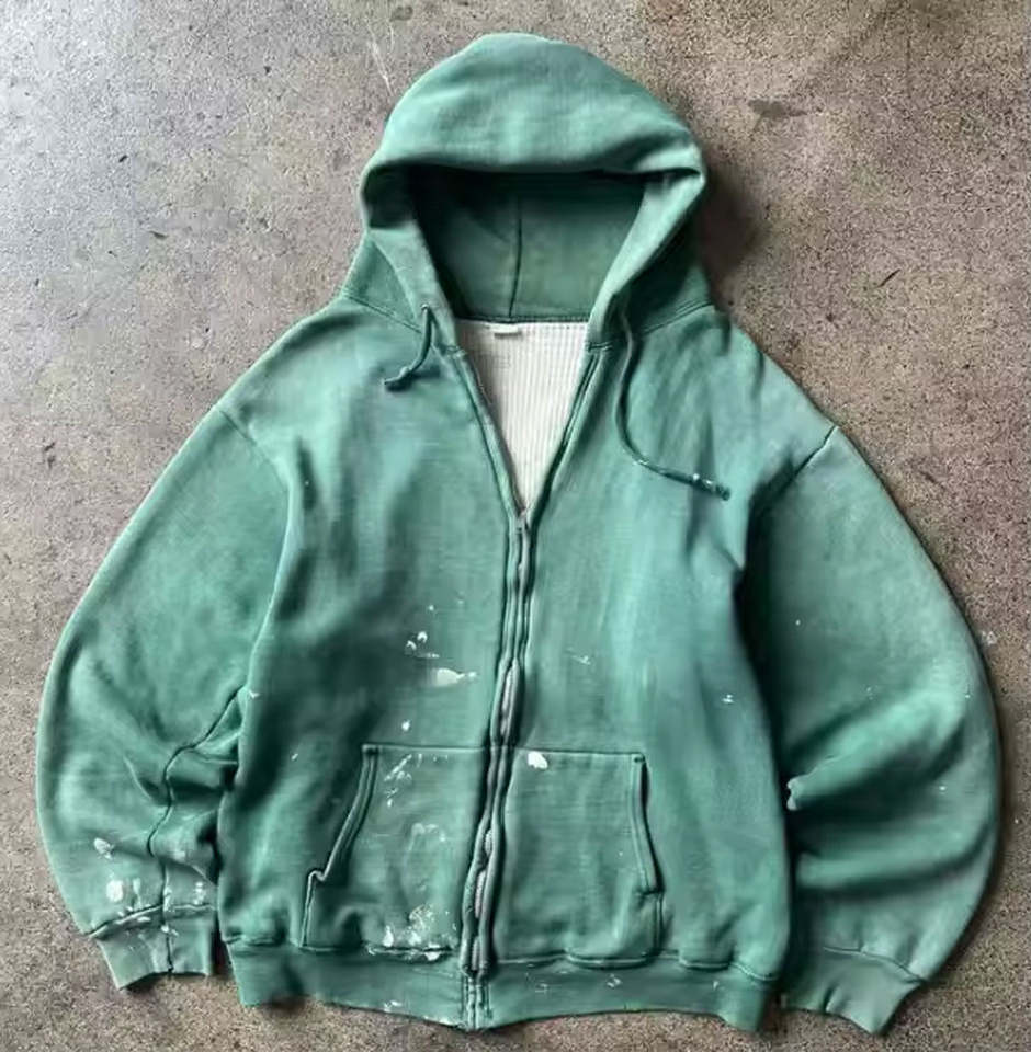 Pull-over streetwear personnalisé avec logo, coupe oversize, en molleton polyester/coton épais, effet vintage délavé, gaufré, pour l'hiver