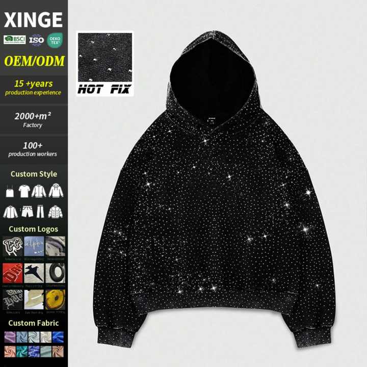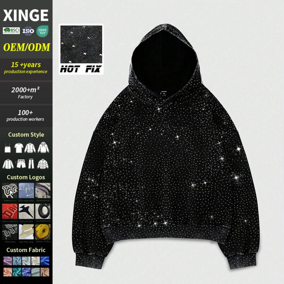 Numéro de Type:CUS250620 Rhinestone Graphic Print Hoodie