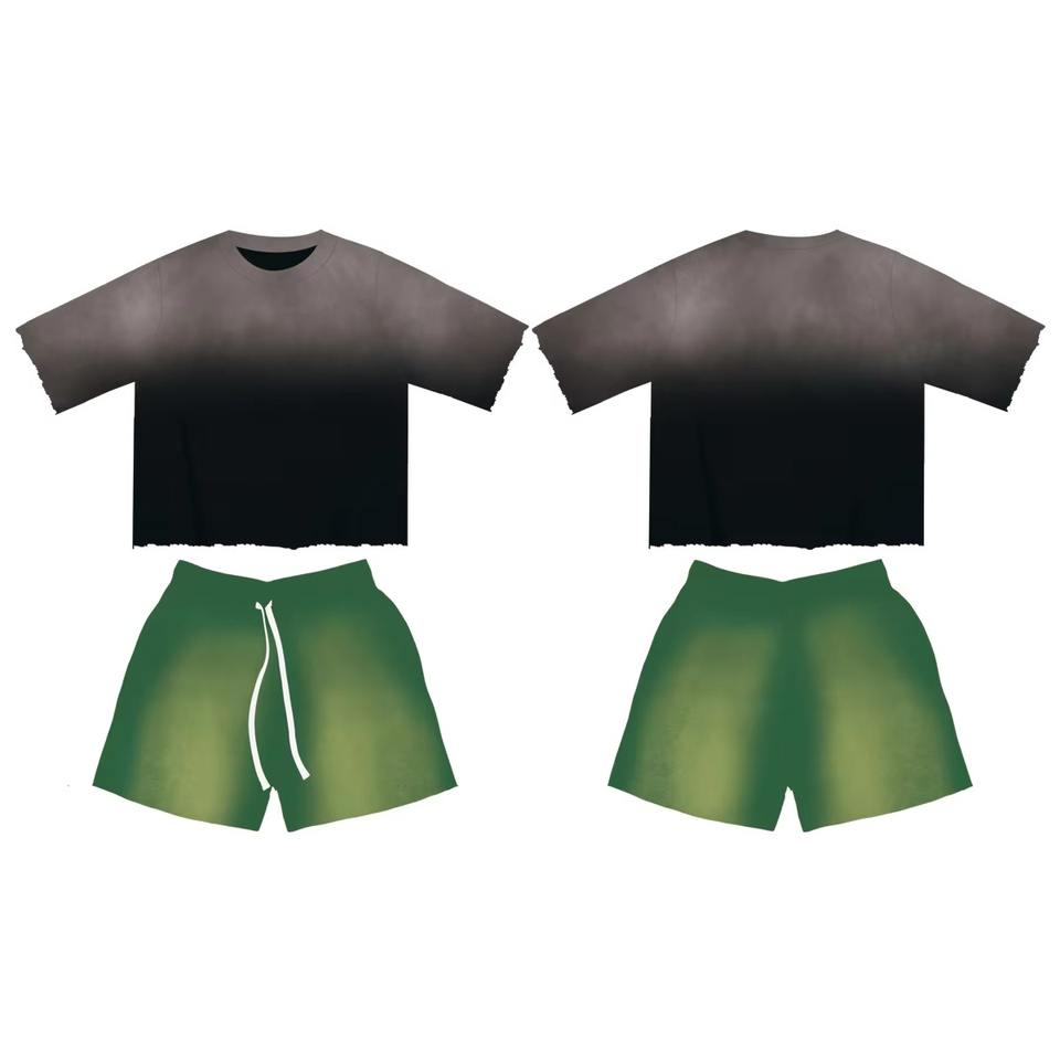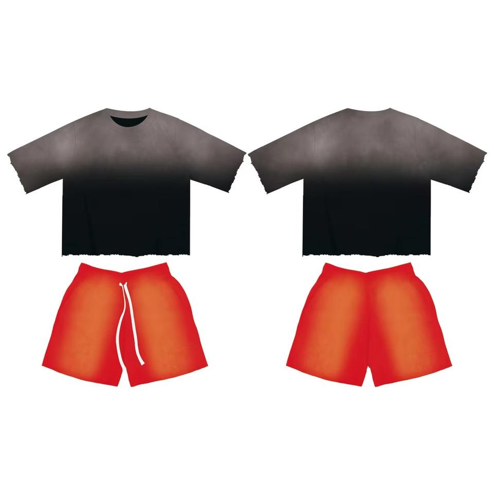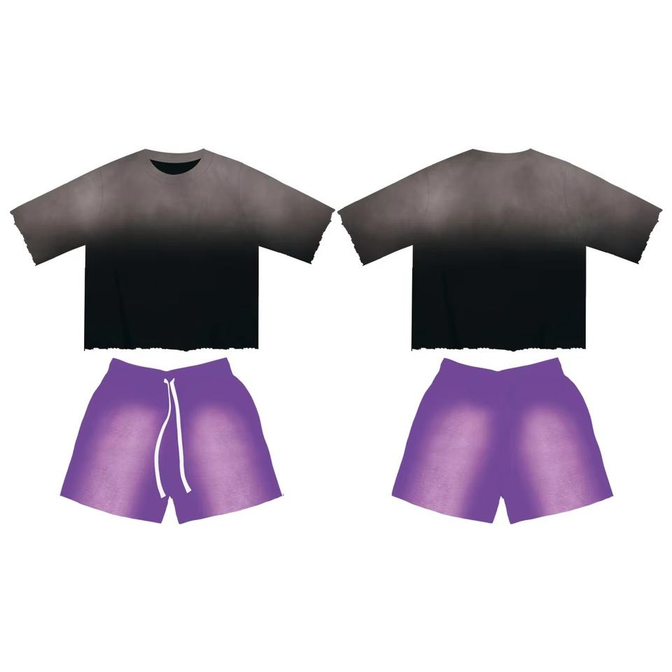 Ensemble streetwear graphique personnalisé : T-shirt imprimé dessin animé et short délavé à l'acide – Ensemble d'été 2 pièces décontracté en 100 % coton (chemise et short)