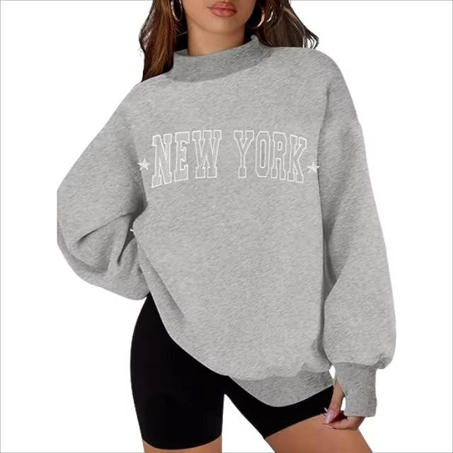 Streetwear Winter Printed Stand Collar Long Sleeve Casual Sweatshirt for Women High Quality