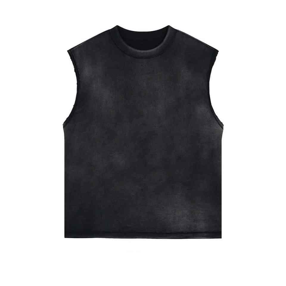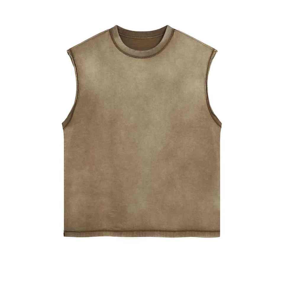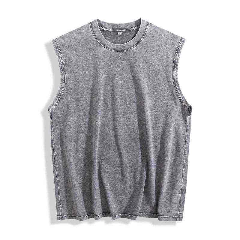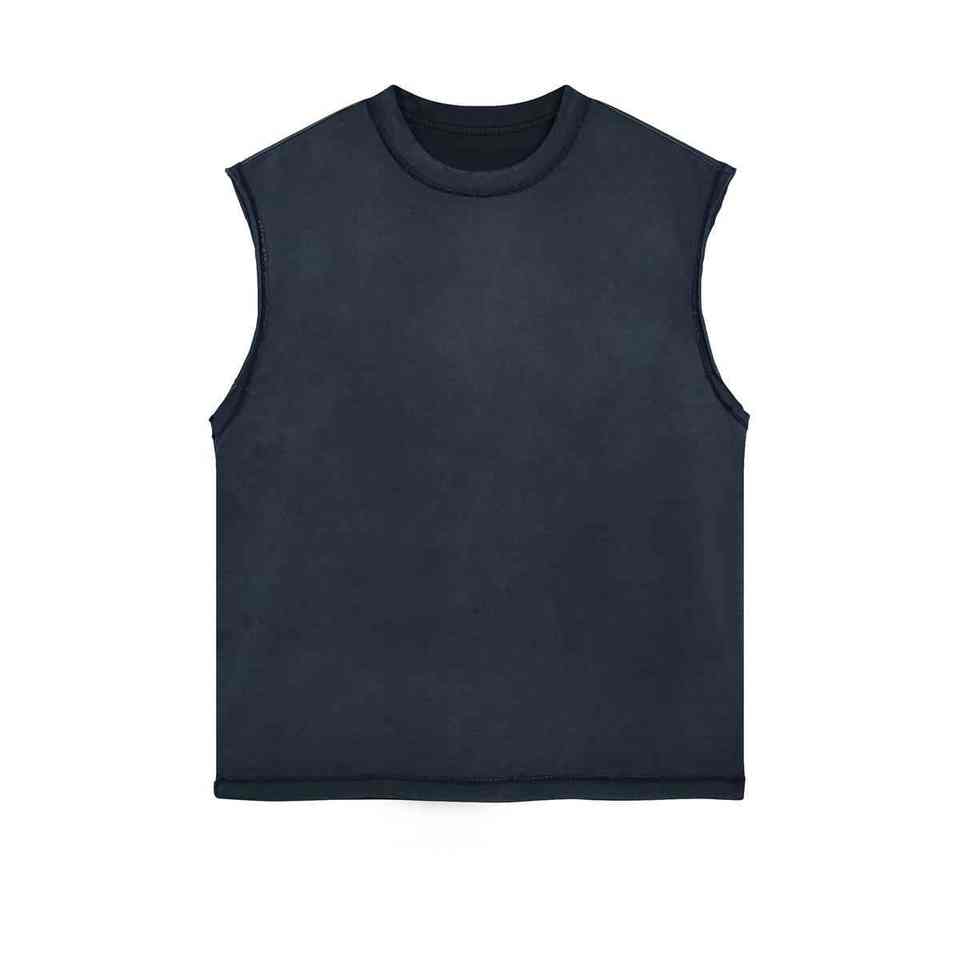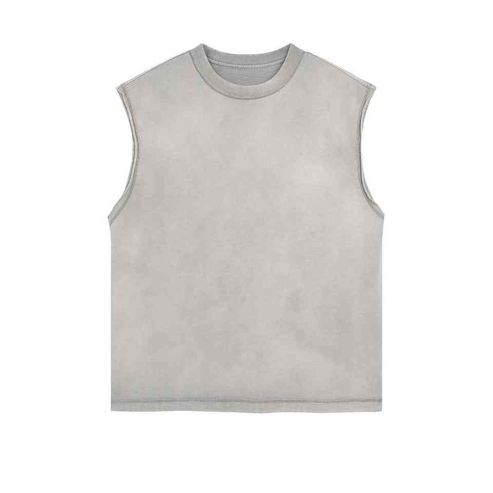 Débardeur de sport surdimensionné streetwear, coupe personnalisée, sans manches, tricoté en spandex/coton, débardeur musculaire, délavage acide, gilet pour homme