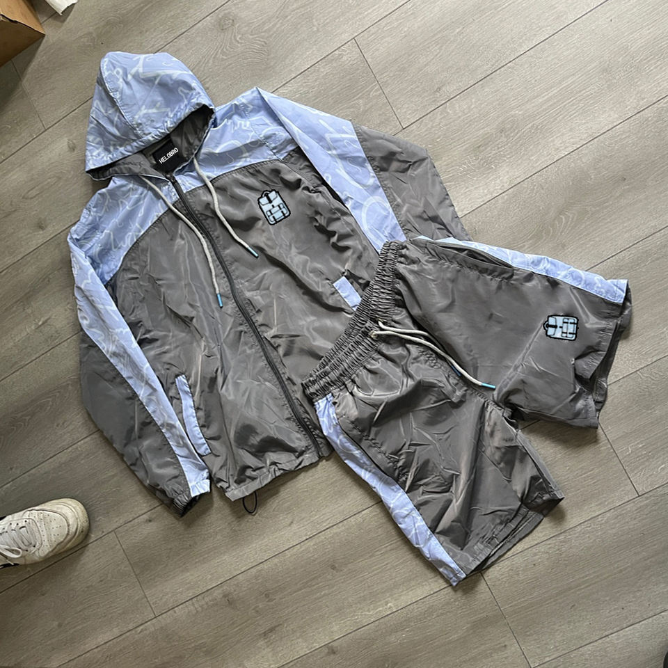 Streetwear Oversized Zip up Jacket and Shorts Sets Nylon Sweat suit Windbreaker Tracksuit for Men