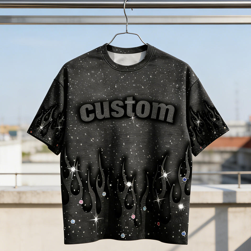 T-shirt Homme Streetwear à Séchage Rapide avec Strass, Manches Courtes Scintillantes Personnalisées, Coupe Ample Rétro pour l'Été