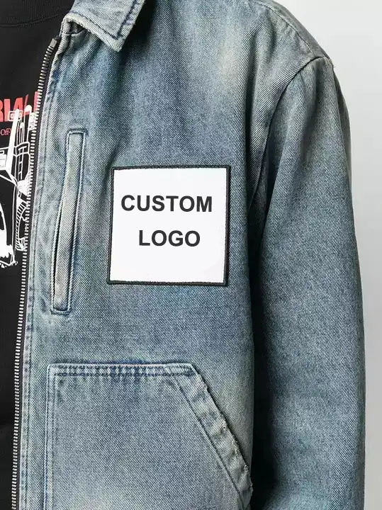 Streetwear Clouté Recadrée Homme Jean Déchiré Denim Cowboy Vestes Manteau pour Hommes Stand Personnalisé Décontracté Autre Tissu Image