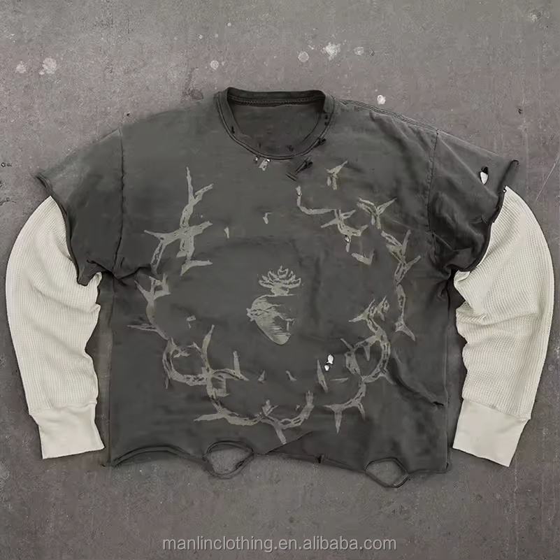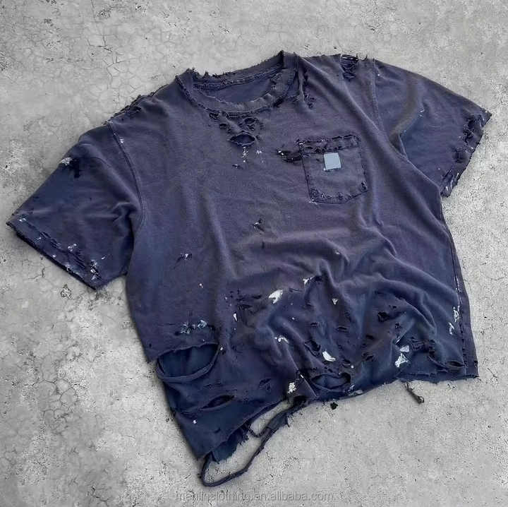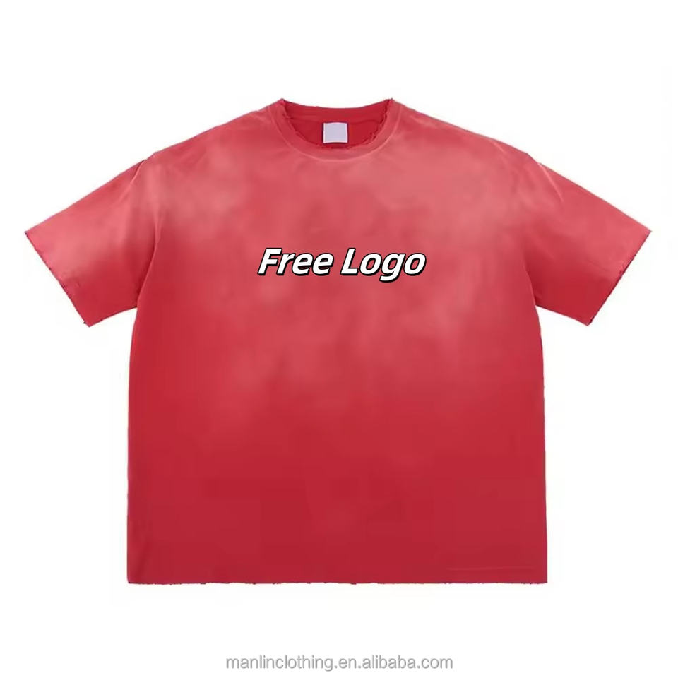 Streetwear T-Shirt en détresse Logo personnalisé surdimensionné 100% coton t-shirt hommes avec petit Edage toutes les chemise de haute qualité t-shirt