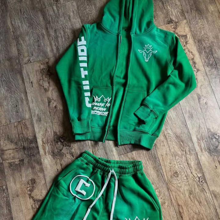 Streetwear Vintage 3D Puff Print Hoodie Drawstring Shorts Tracksuit Oversized 2 Piece Zip up Hoodie Short Set Tracksuit