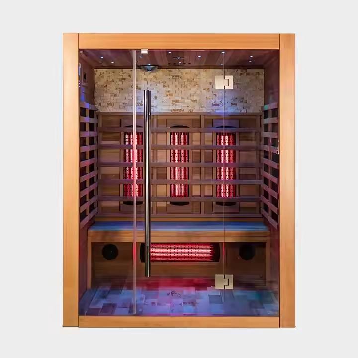 Salle de sauna carrée à spectre complet pour soulager le stress et stimuler l'énergie, grande salle de sauna intérieure pour 2 personnes, position allongée