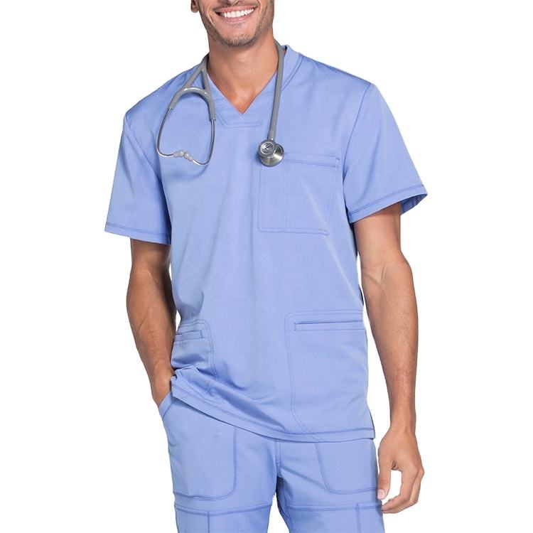 Ensemble de blouses médicales extensibles anti-rides en mélange polyester-spandex écologique, col côtelé élégant, multi-poches, manches longues