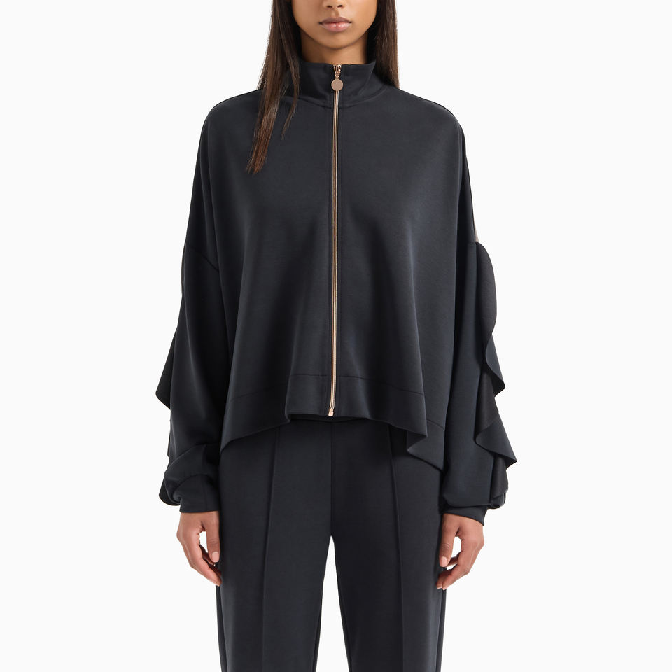Combinaison de survêtement zippé en mélange de modal extensible précieux bras ondulés drapés High Street Fashion nouveauté survêtements