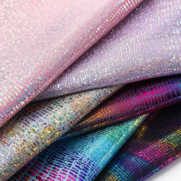 Tissu extensible brillant métallisé irisé effet peau de serpent, 160 g/m², polyester élasthanne, pour vêtements et rideaux