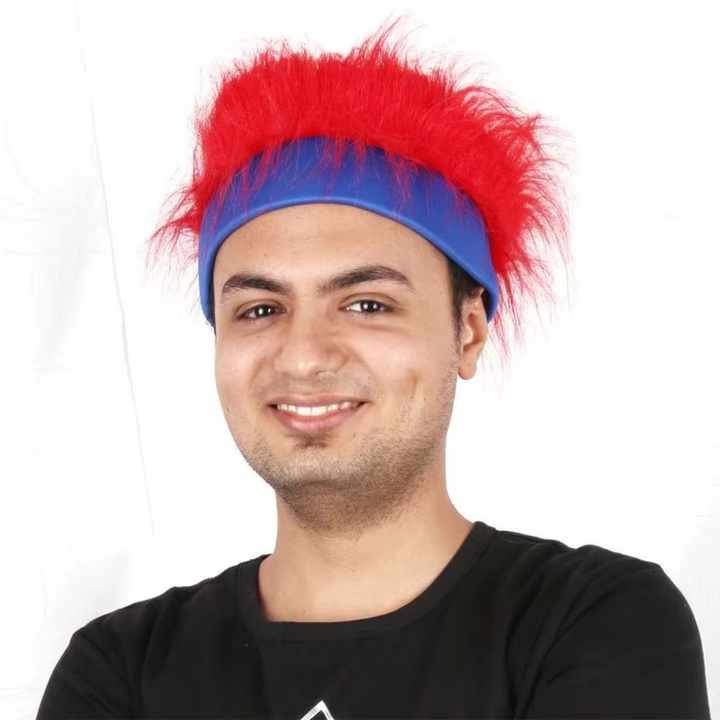 Perruque synthétique pour hommes Striking Red Party avec bandeau bleu contrasté-Parfait pour les conventions d'anime Cosplay Events