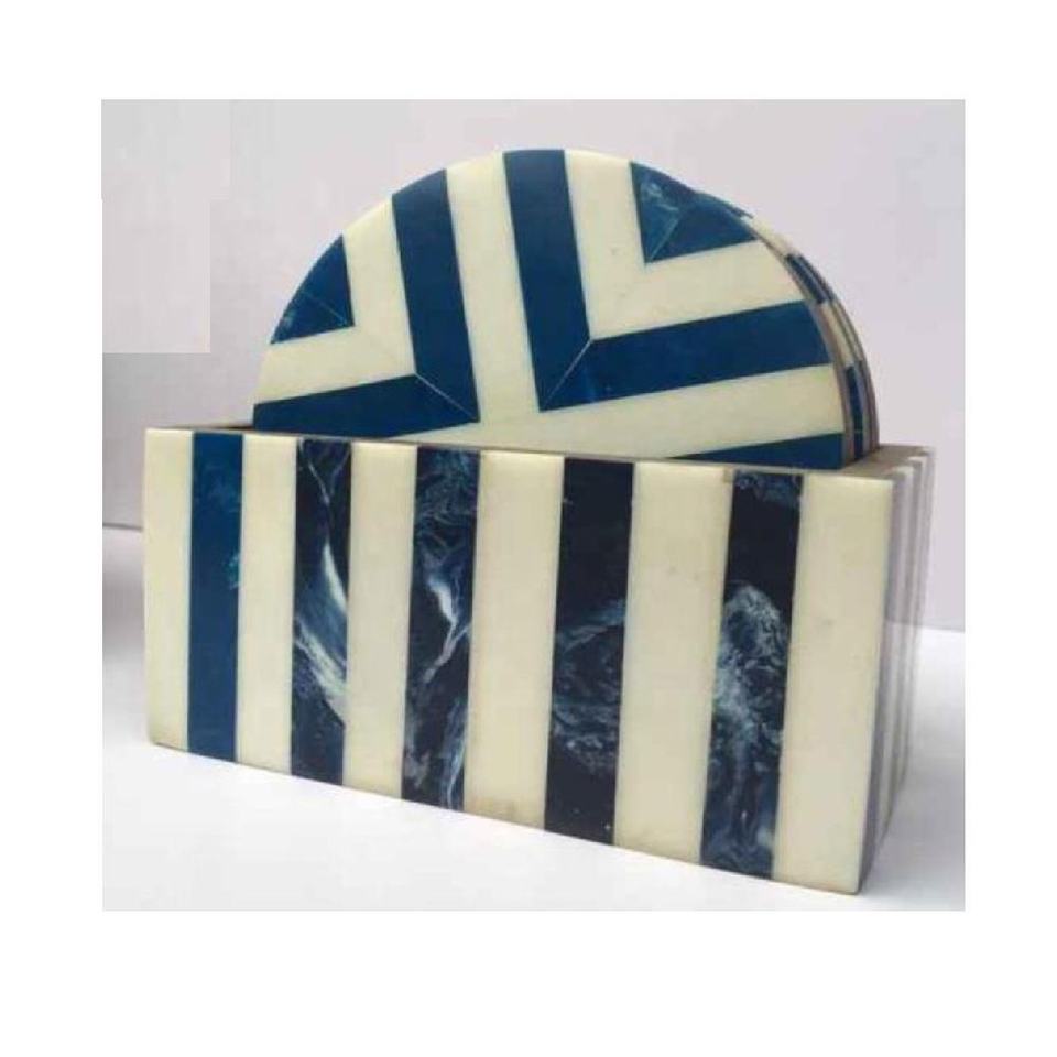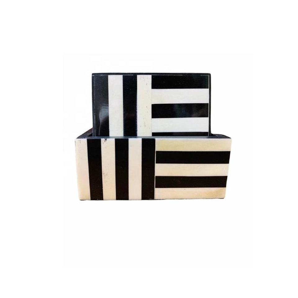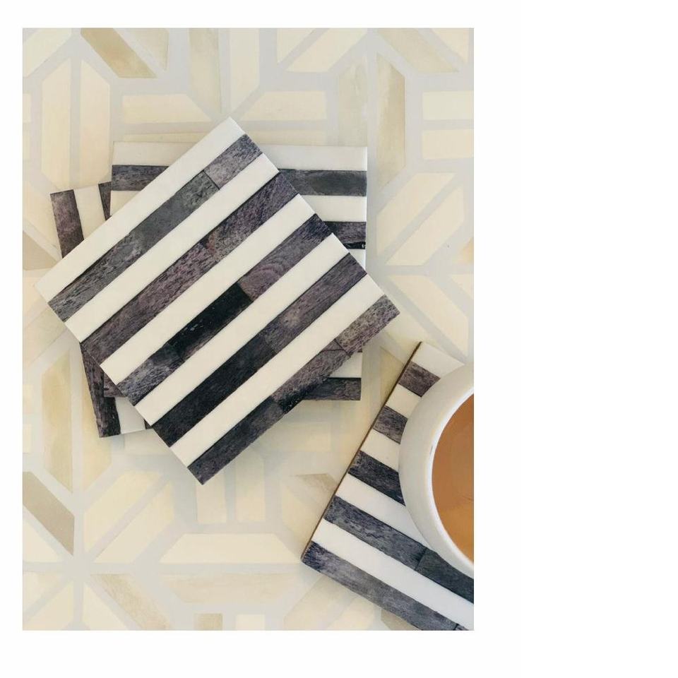 Ensemble de 4 sous-verres incrustés d'os à rayures avec support thé café boisson Table caboteur décoration de cuisine protéger la chaleur sous-verres