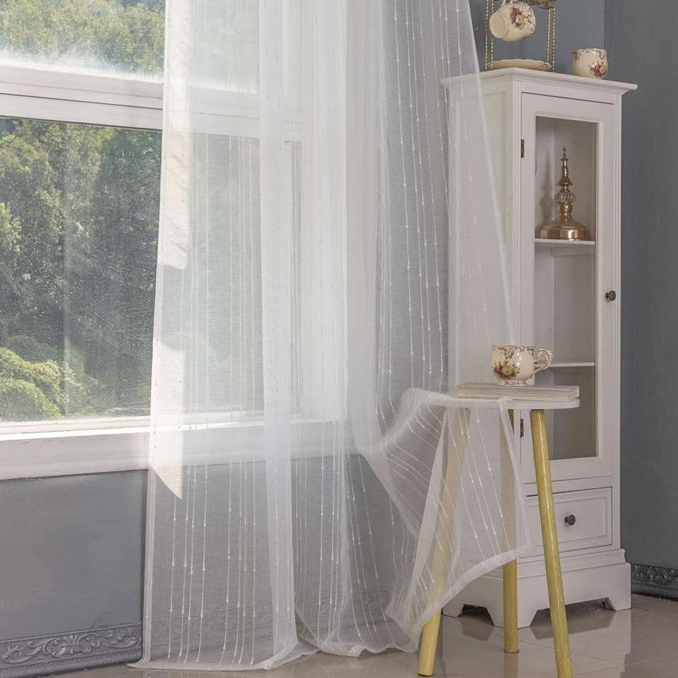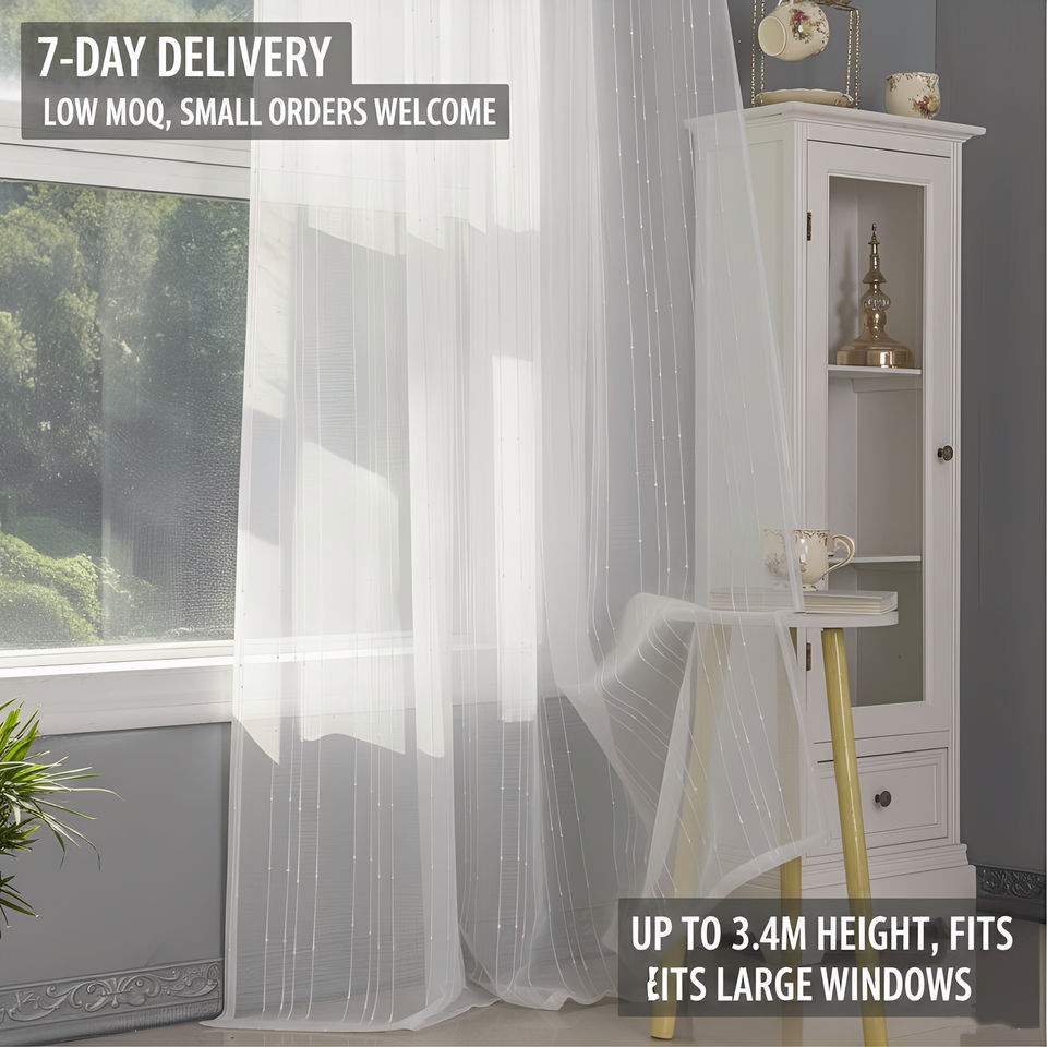 Tissu de rideau transparent à motif rayé, translucide, 140-340 cm, pour salon, personnalisable, tissu de rideau transparent en dentelle brodée