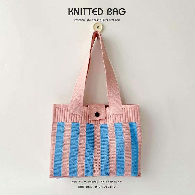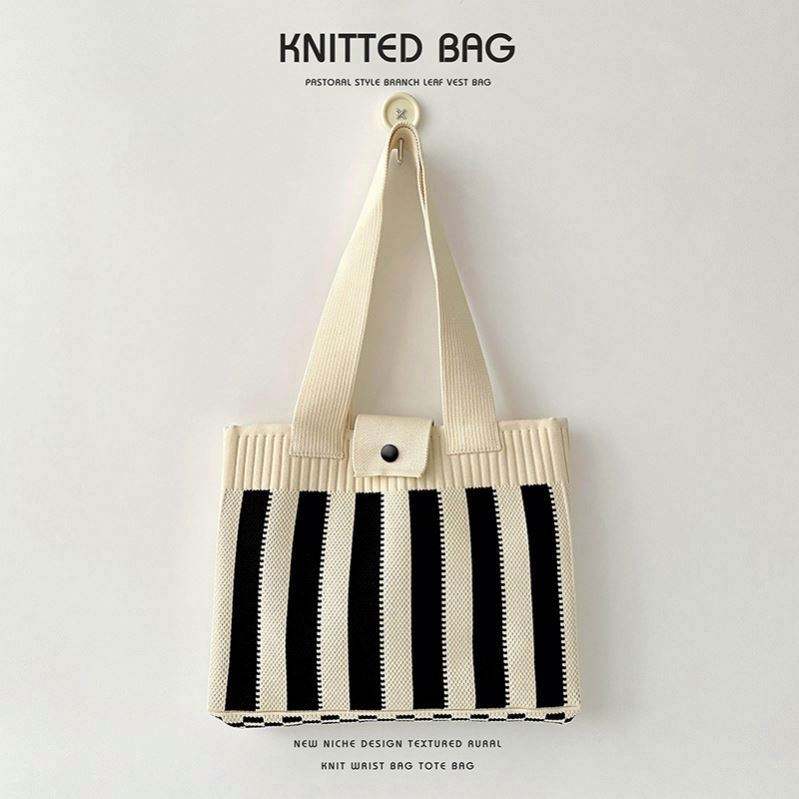 Sac fourre-tout tricoté à rayures, polyvalent, à porter à l'épaule ou sous le bras, grande capacité, pour femme