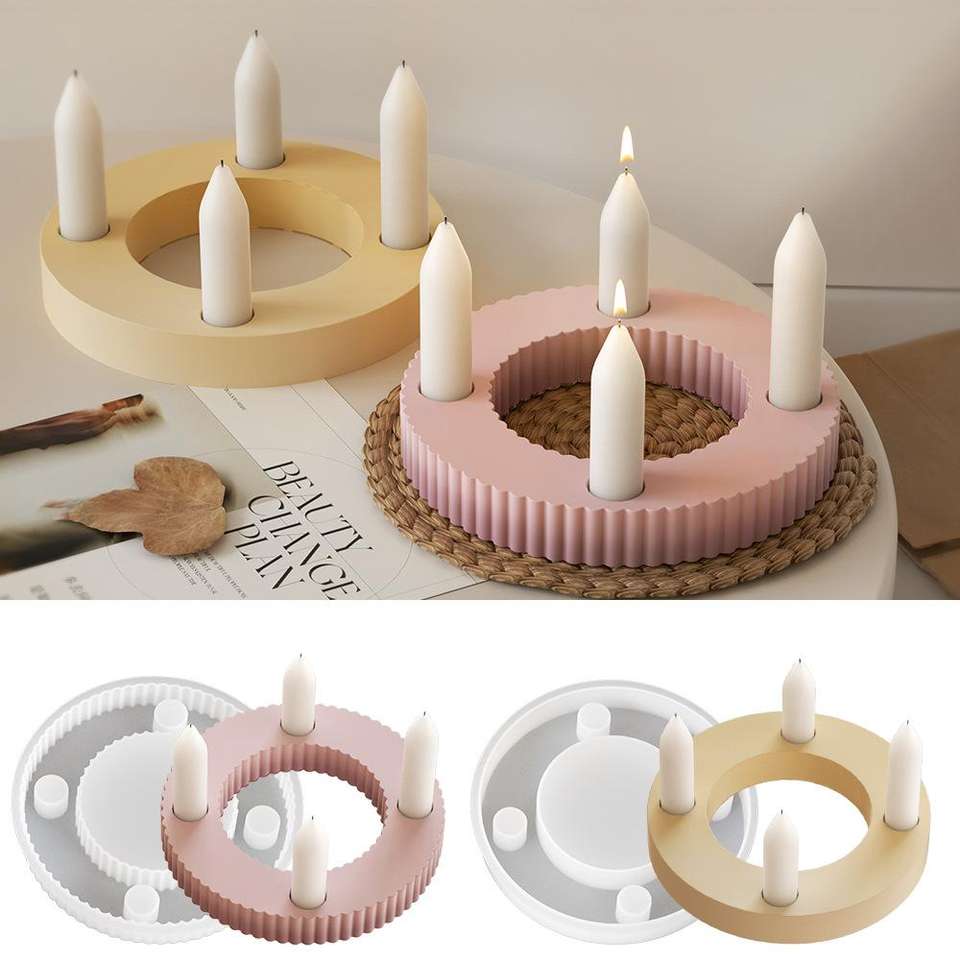Striped Glossy Four Hole Candle Holder Base Gypsum Epoxy Resin Candle Silicone Mold