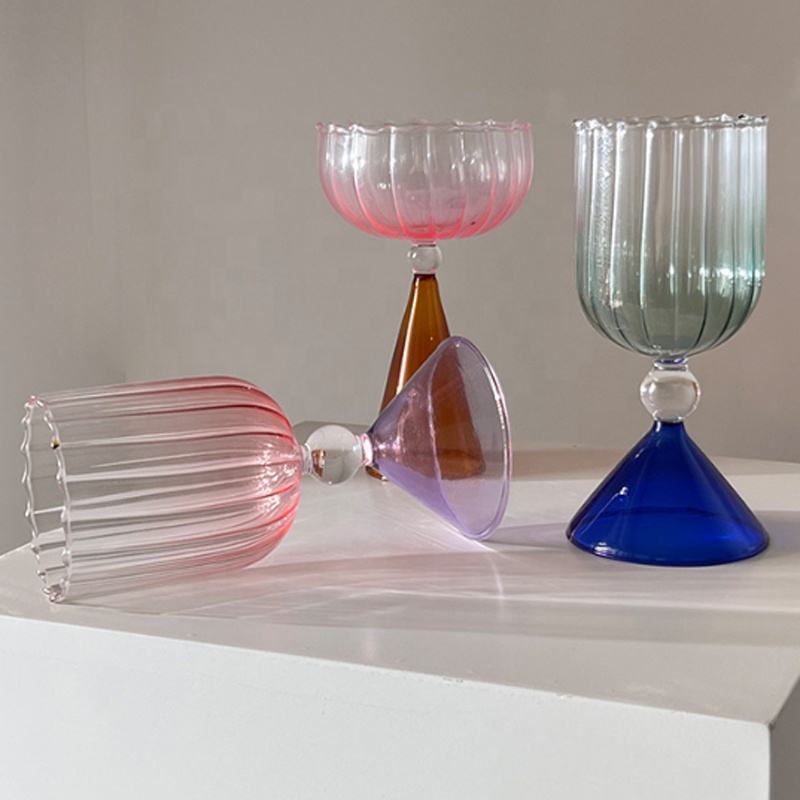 Rayé jus lait café crème glacée verre Dessert pouding eau boisson tasse côtelé Champagne vin Margarita Martini verre à Cocktail