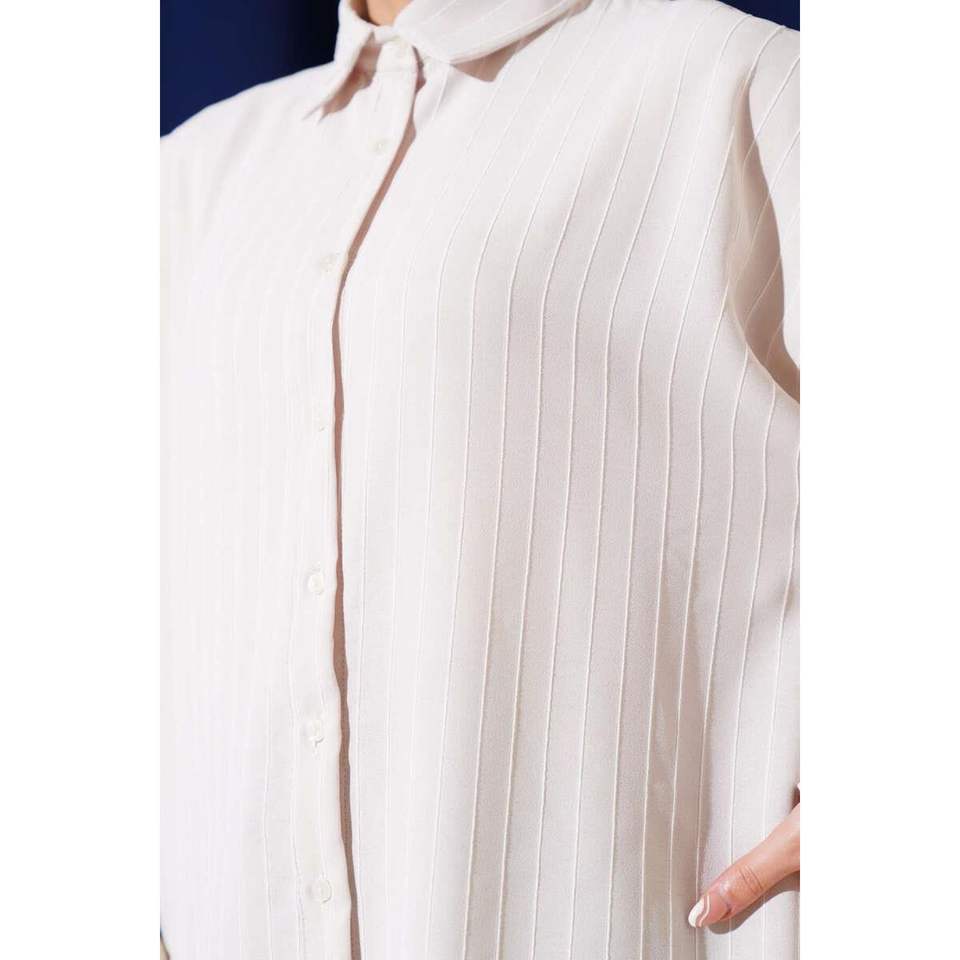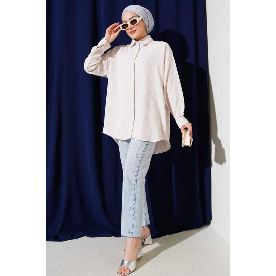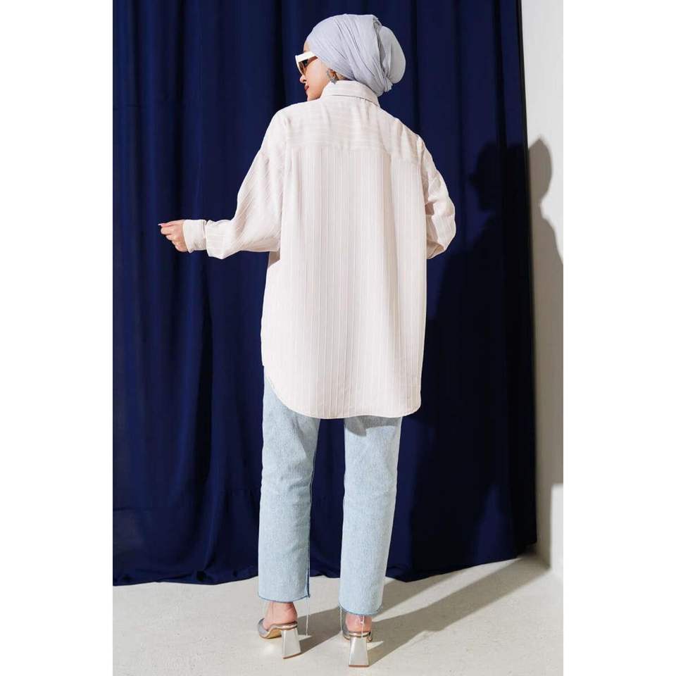 Chemise plissée sur le dos, coupe oversize, couleur pierre, taille S/M, très colorée