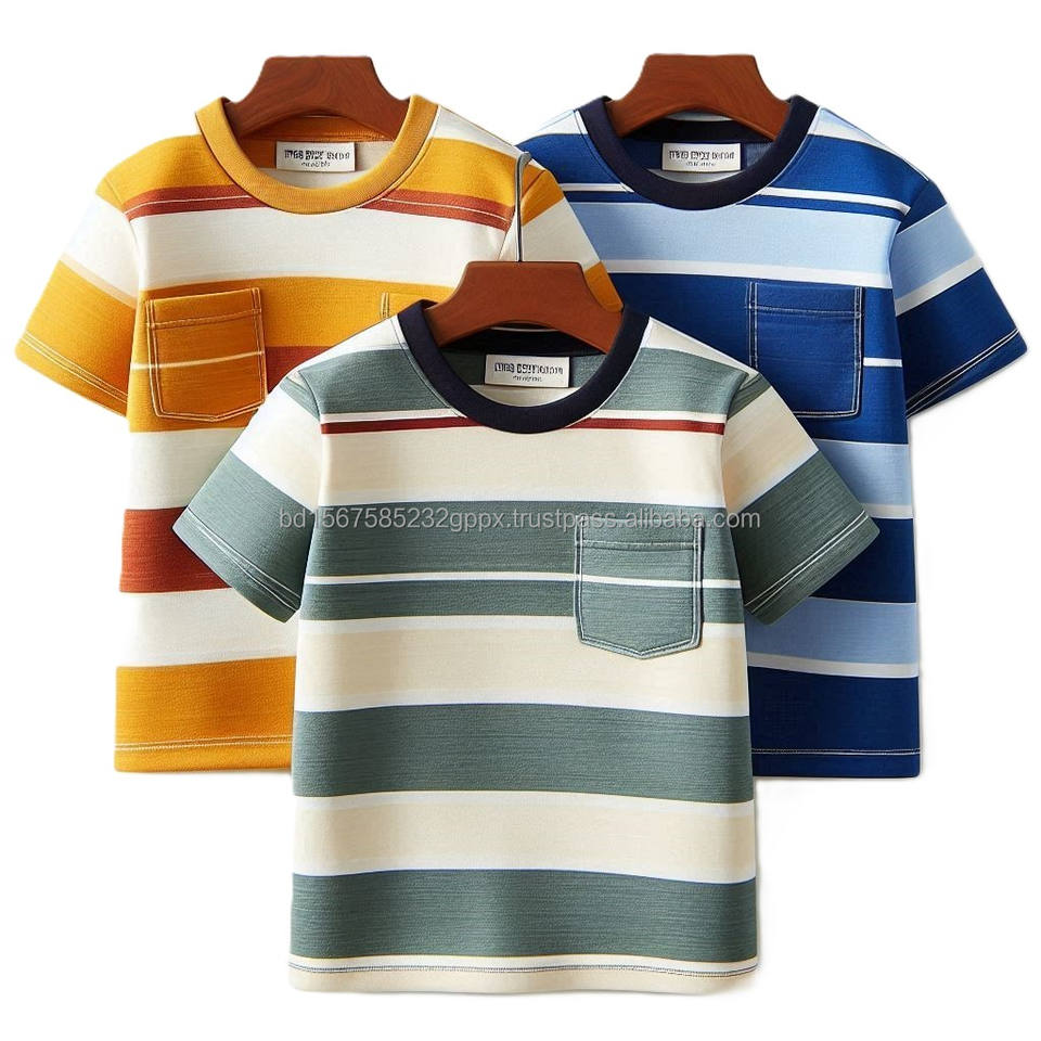 Nom du produit:T-shirts rayés avec une poche avant de poitrine
