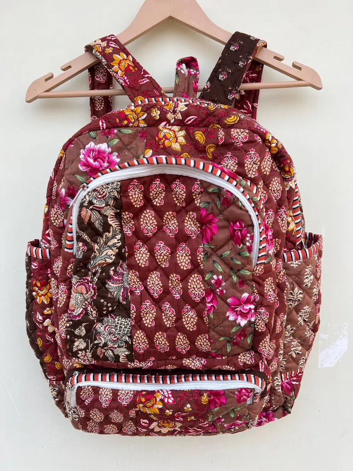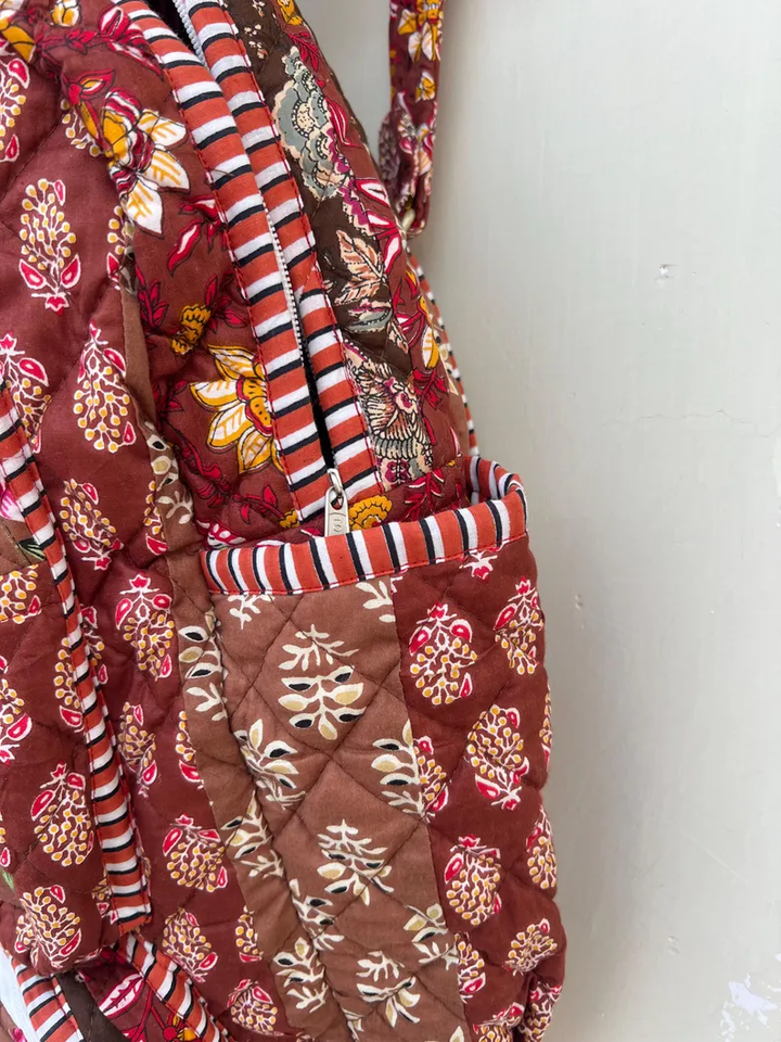 Sac à dos pour filles rayé matelassé antivol imperméable, sac d'école en coton fait main, sac de voyage léger multi-poches, style bohème