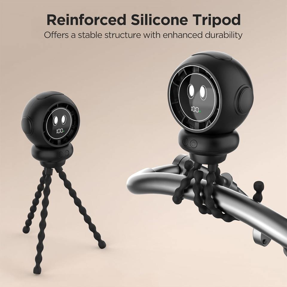 Ventilateur de poussette 4000mAh, ventilateurs à clipser pour bébé avec 4 vitesses, écran LED, lumière de nuit 360° ° Ventilateur portable rechargeable rotatif