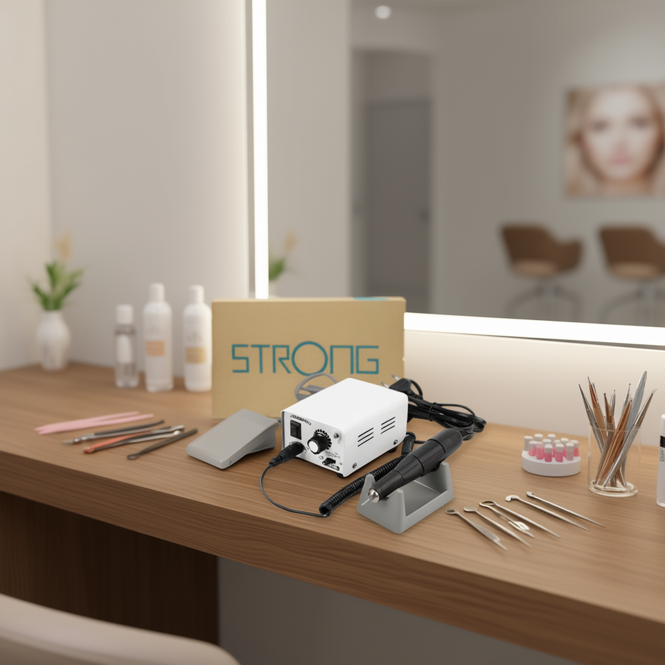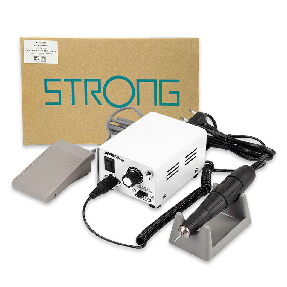 Polisseuse à ongles Strong 90 35000 tr/min, perceuse à ongles professionnelle avec pédale et accessoires pour le polissage des ongles