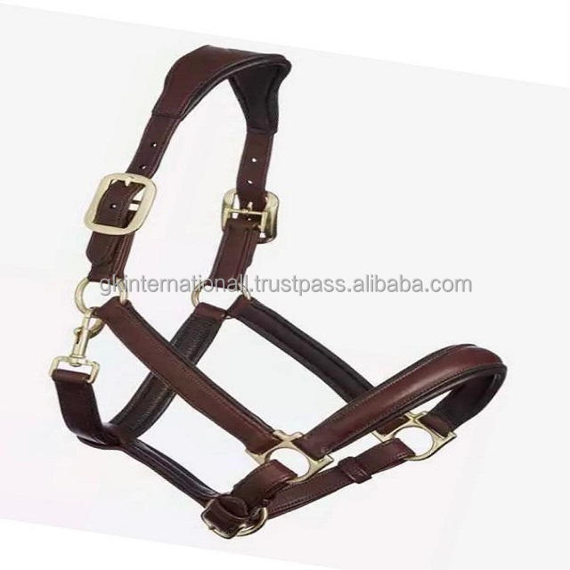 Licou de cheval en cuir noir ou marron doux et confortable, équipement d'équitation avec quincaillerie en laiton ou en nickel