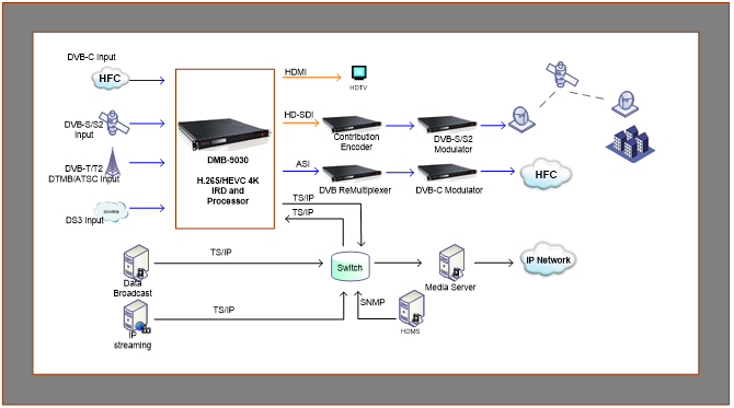 Applications:IPTV, tête de réseau de la télévision par câble/distribution de télévision en direct par satellite/contribution