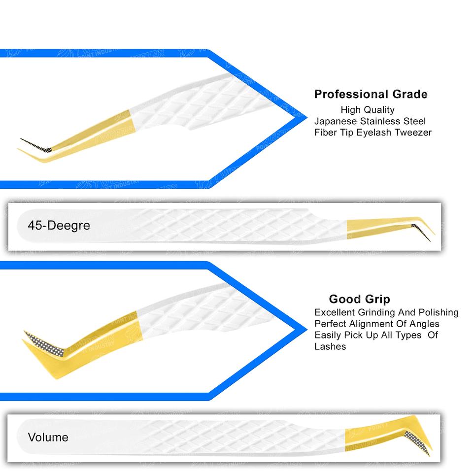 Custom Logo Eyelash Tweezers with Strong Diamond Grip Color Coated Beauty Tool Stainless Steel Fiber Tip Lash Pointed Tip