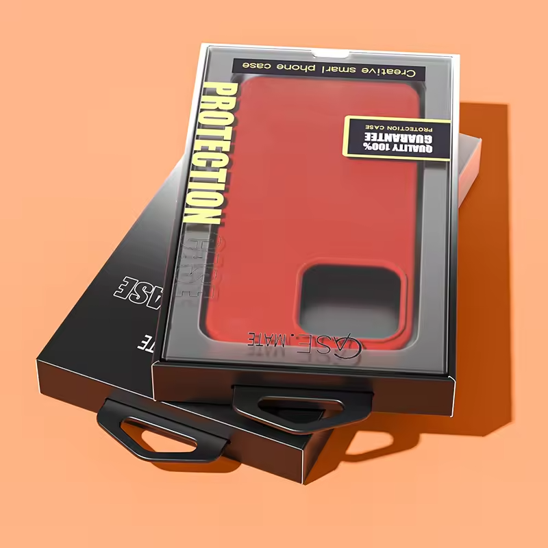 Boîtes d'emballage pour téléphones portables en papier, écologiques et résistantes, à suspendre au mur, avec fenêtres transparentes en PVC