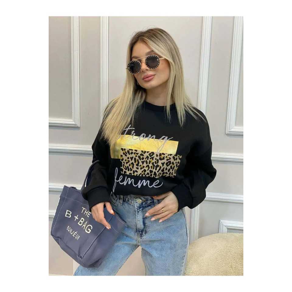 Sweat-shirt imprimé Strong Femme à col rond pour femme, épaules tombantes, 100 % coton, imprimé foil, tricoté