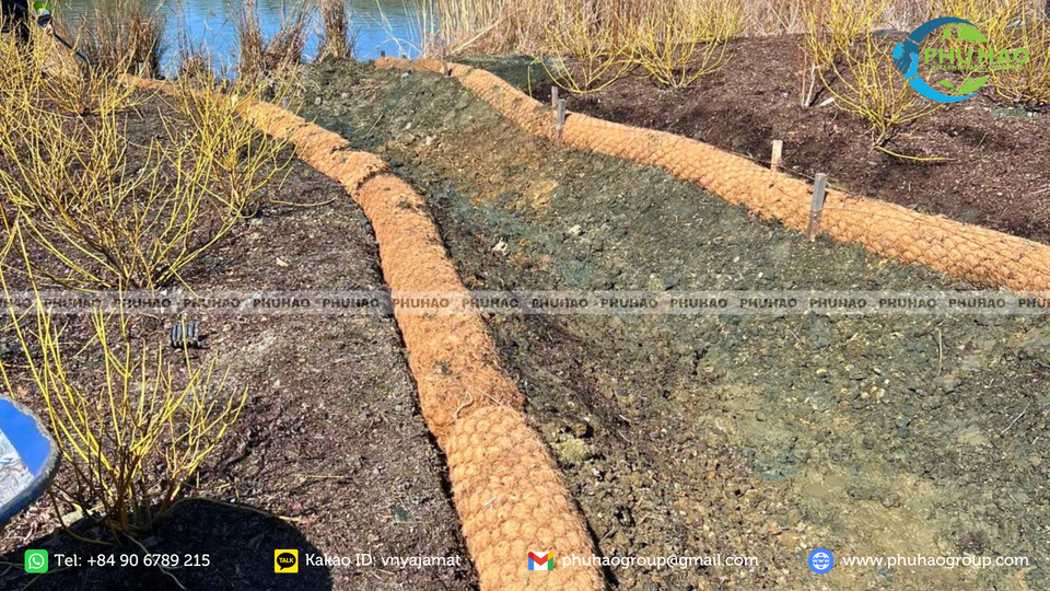 Bûche de coco solide pour la protection des berges et la maintenue de la stabilité des rives de rivières et de canaux