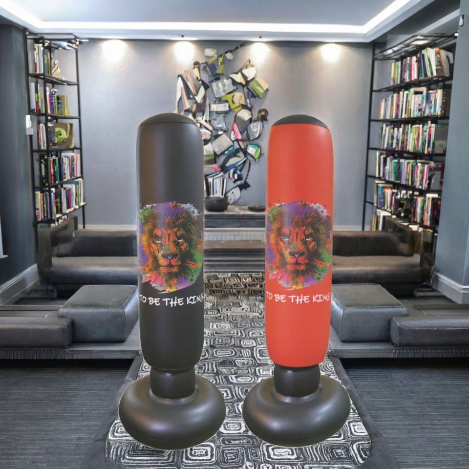 Sac de frappe gonflable pour enfant fort pour la pratique du kickboxing Sac de boxe gonflable Lion rouge/noir Sac de boxe gonflable de haute qualité en vente