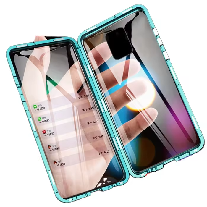 Couverture de cas de téléphone portable en métal à deux côtés d'adsorption magnétique d'aimant fort avec le verre trempé clair pour Iphone