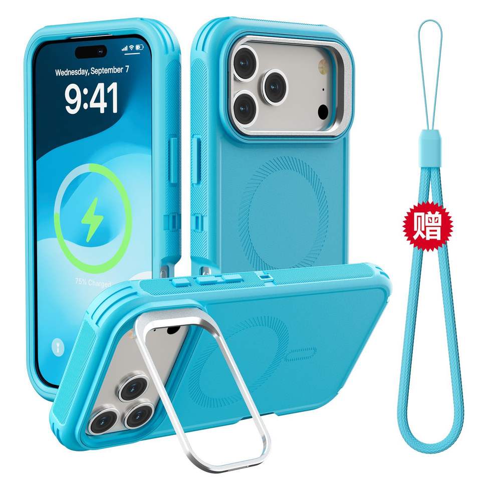 Étui de téléphone magnétique puissant avec support d'appareil photo pour 17 Promax 16promax 15 14, béquille et chaîne, protection intégrale, vente en gros
