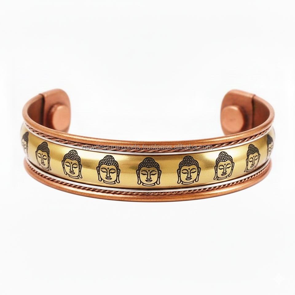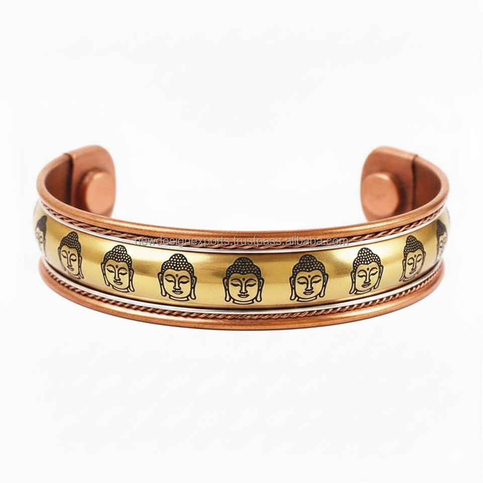 Aimant puissant en néodyme, Kada en cuivre pour une thérapie maximale, gravé avec le Bouddha