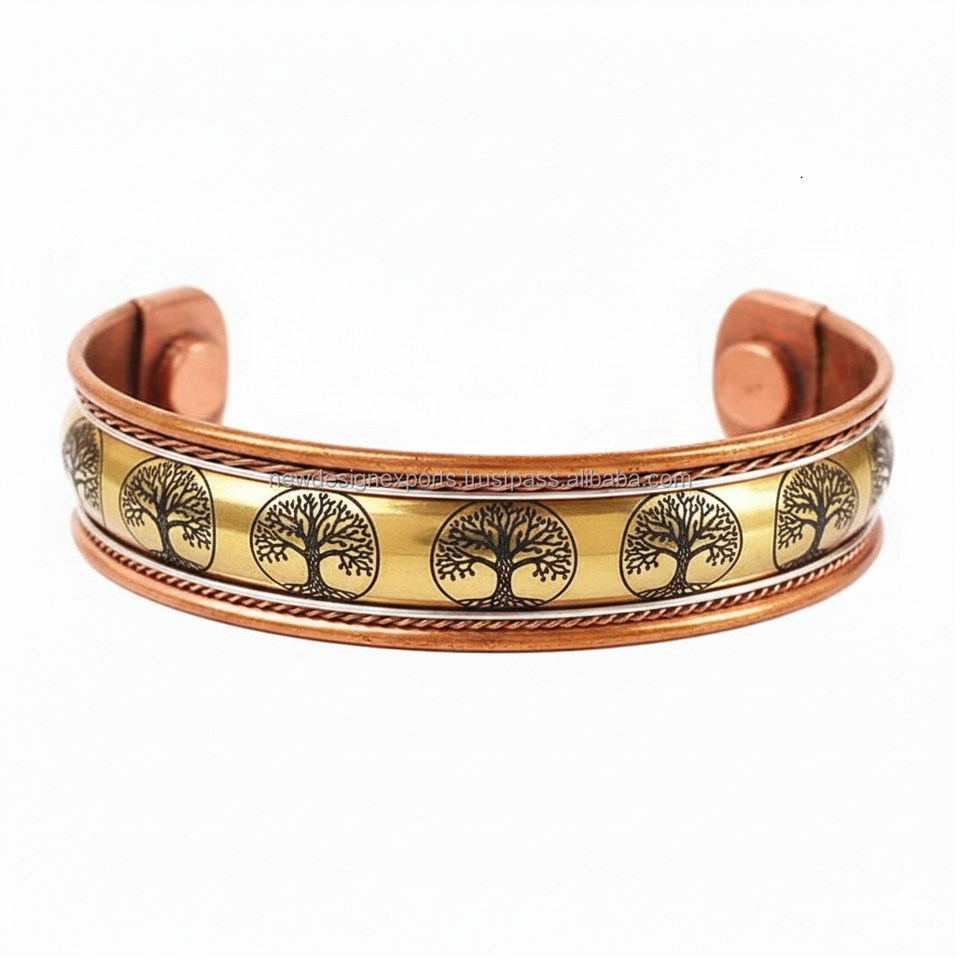 Aimant puissant en néodyme, Kada en cuivre pour une thérapie maximale, gravé motif arbre