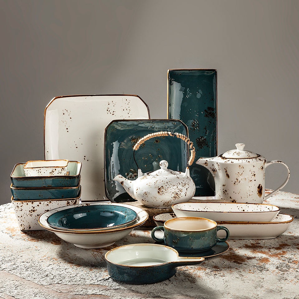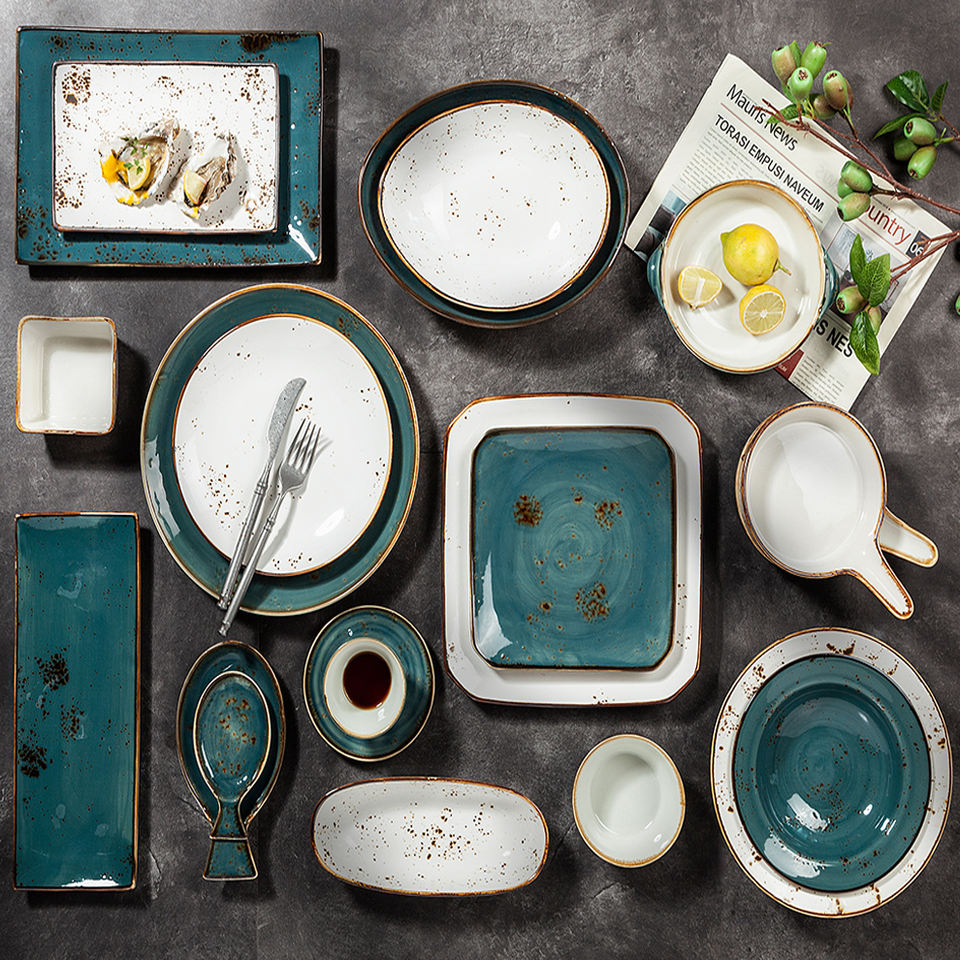 Forte porcelaine turque rétro tasse assiette bol pot en gros vaisselle blanc bleu émaillé céramique japonais restaurant vaisselle
