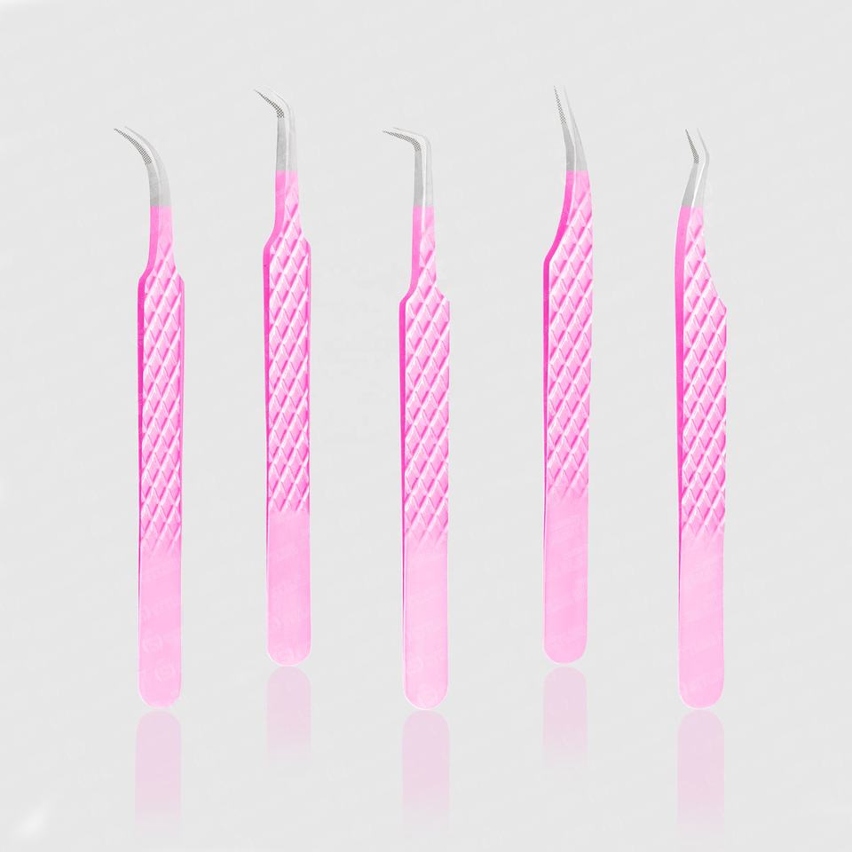 Ensemble solide diamant rose faux cils 35 degrés enduit extension incurvée pointe pointue fibre d'acier inoxydable