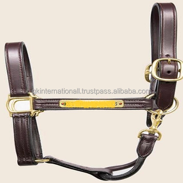 Courses de chevaux en cuir véritable entièrement réglables et robustes cousues en licou dans des tailles personnalisées et une plaque signalétique personnalisée