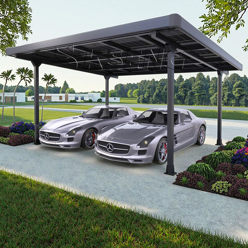 Garage de stationnement photovoltaïque en alliage d'aluminium pour abri de voiture solaire à structure solide avec panneau solaire noir pour le stationnement de voiture